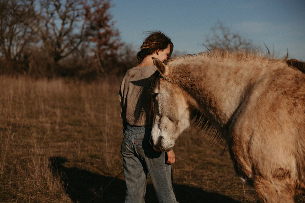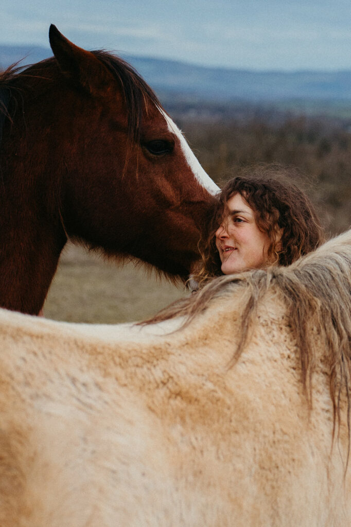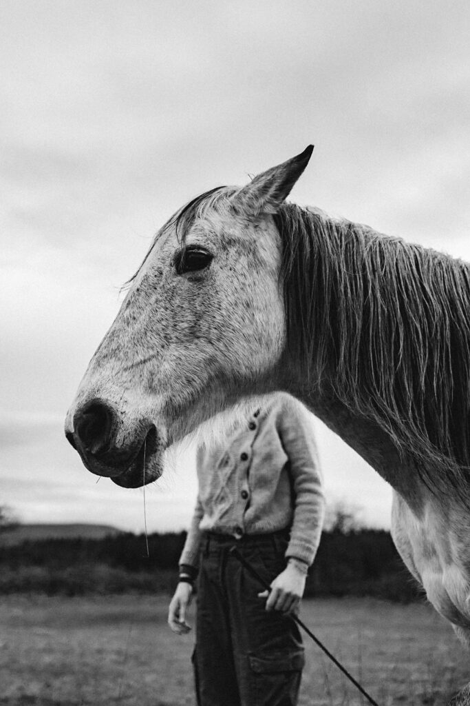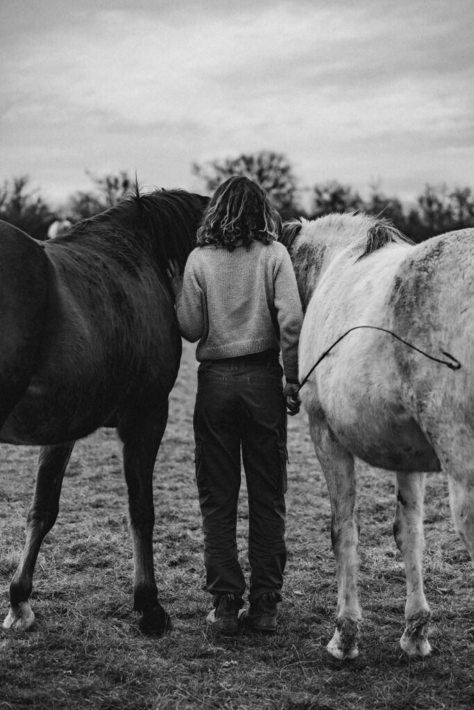 Deux jours pour me faire adopter par Céleste. Deux jours pour me faire adopter par les chevaux. Deux jours pour montrer en 20 images, un aperçu du quotidien de leur trêve hivernale, de leurs conversations silencieuses, une infime partie de cette vie, tournée vers les autres, de cette vie dédiée à recréer du lien.
