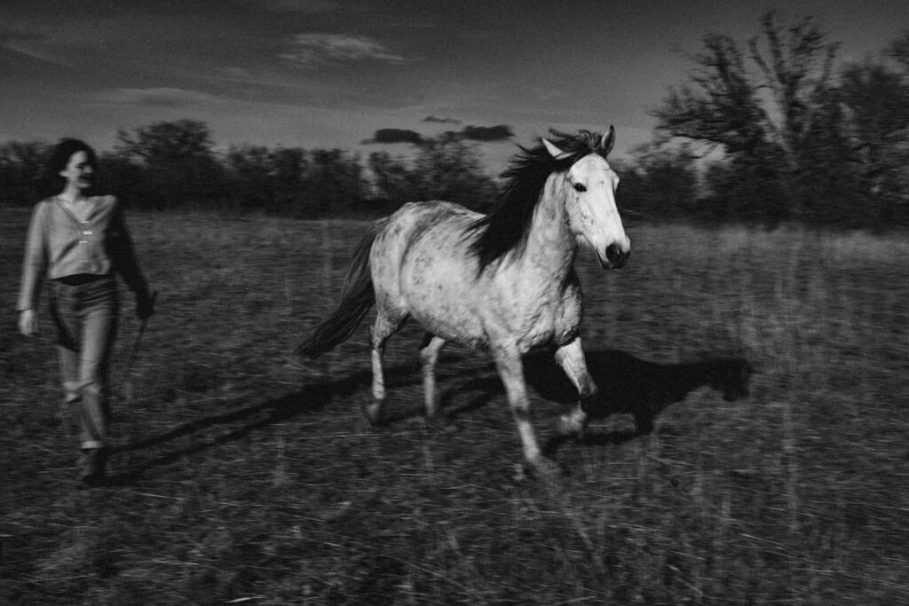 Des bonds, des jeux, de grands éclats de rire qui pourraient aussi bien venir de l’humaine que des chevaux.